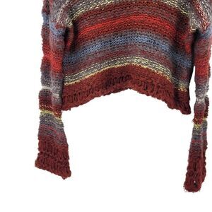 Free People Wool Multicolor Striped Knit Sweater 3/4 Cropped Pullover XS Red