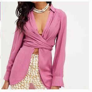 Free People Worlds Apart Tunic Plum Tie Front Boho Vacation Coverup Beachy Small