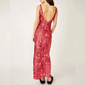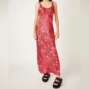 Free People Worth The Wait Bias Slip Dress - Size M - Cherry Red - NWT