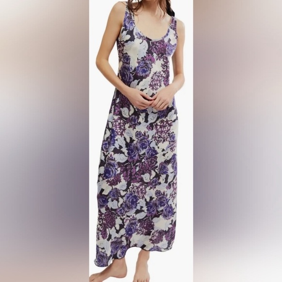 Free People Worth The Wait Silky Floral Maxi Dress Dark Night Combo Size Medium