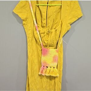 Soft woven pouch bag with a boho vibe. Long strap perfect for wearing around your neck or on your shoulder. Mini silhouette with an open top and finished with fringe detailing.