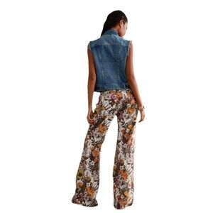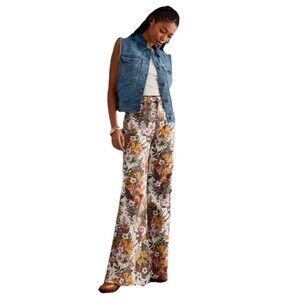 Free People Wrangler Wanderer 622 Mid Rise Floral Flare 34/32 Western Cowgirl
