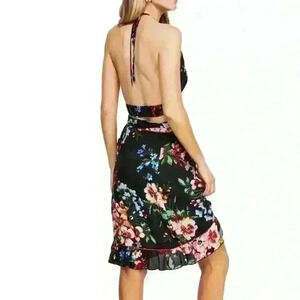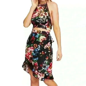 Free People Wrap Black Floral Mini Skirt