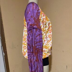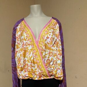 Free People Wrap Blouse in Orange and Yellow with Long Sleeves