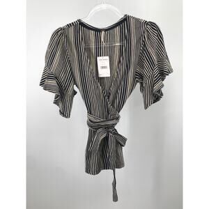 Free People Wrapped Around My Finger M Striped Knit Short Sleeve Wrap Blouse