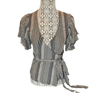 Wrap style; tie at side; allover stripe