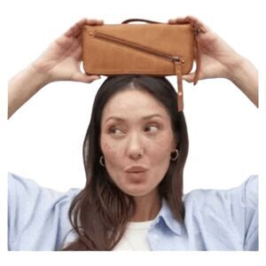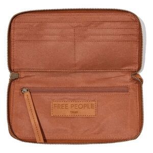 Free People Wristlet Wallet Distressed Vegan Leather Tan Brown Bohemian