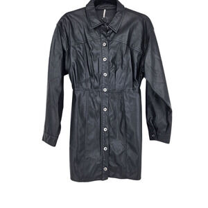 Free People X Amber Black Faux Button Front Long Sleeve Mini Dress Size 6