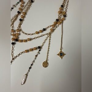 - stunning one of a kind semi-precious stones adorn a layered golden chain