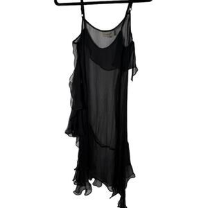 Free People X Brenda Knight Nigel Preston Chiffon Sheer Ruffle Top Black Size XS