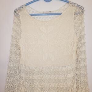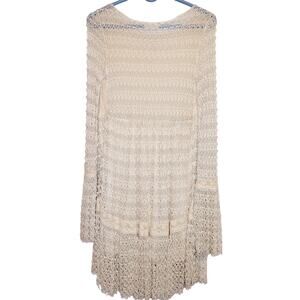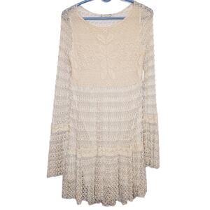 Free People X Crystal Snowflake ivory crocheted long bell sleeve boho dress Sz S