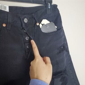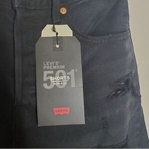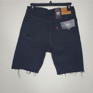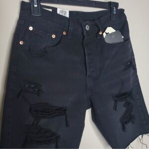 Free People X Levi's Black 501 High Rise Distressed Slouch Denim Jorts Shorts