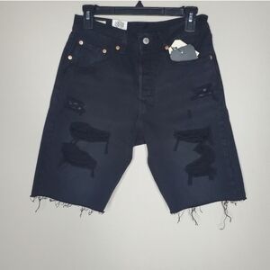 Brand new with tags. Excellent condition. Black. High rise. Button fly. Distressed. Five pockets. Bermuda shorts. Denim jorts. Sold on Revolve.