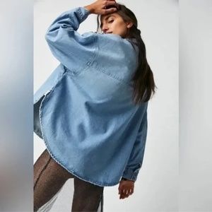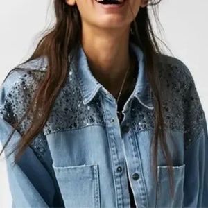 Free People X One Teaspoon Hand Embellished Daria Denim Shirt Sz M MSRP $298