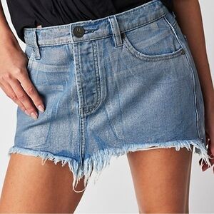 Free People X OneTeaspoon Blue Future Junkyard Mini Skirt 25 XS Shimmer Fray NEW