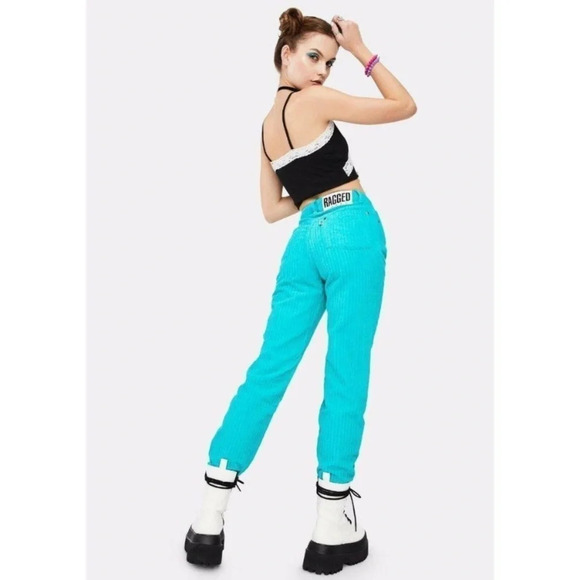 Free People X Ragged Priest jumbo Corduroy Dad Jeans TURQUOISE size 24