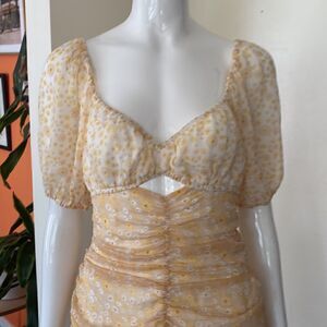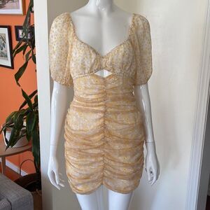 Free People X Revolve Yellow Ruched Tessa Daisy Mini Dress Size XS
