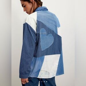 Free People X Tricia Fix Heart Appliqué Shirt Denim 100% cotton - XS NWT