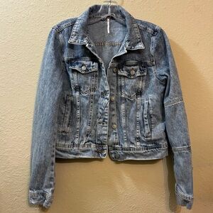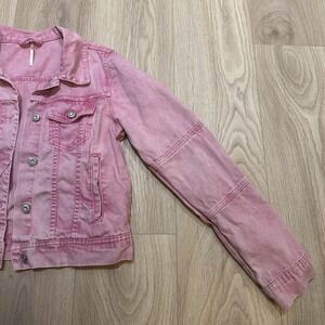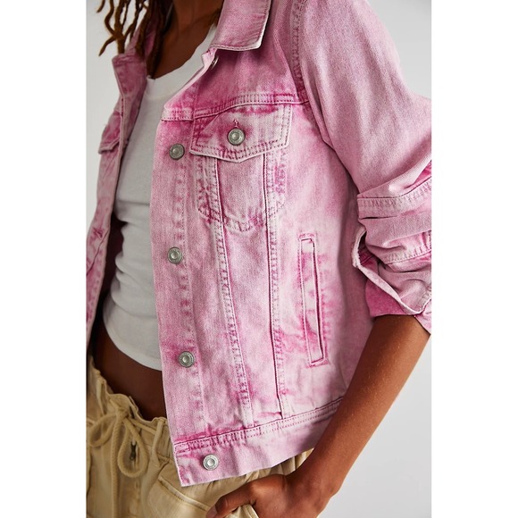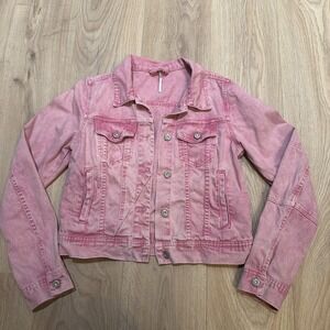 Free People X We The Free Rumors Denim Jacket Pink Acid Wash Women's Small EUC