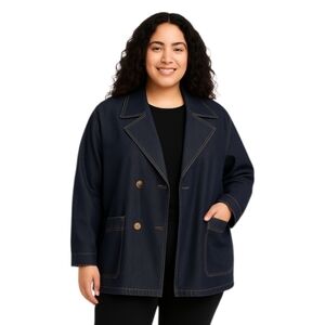 Free People XL Oversized Denim Car Jacket β Double-Breasted, Deep Pockets