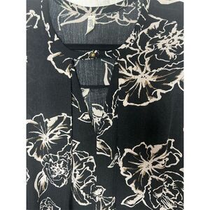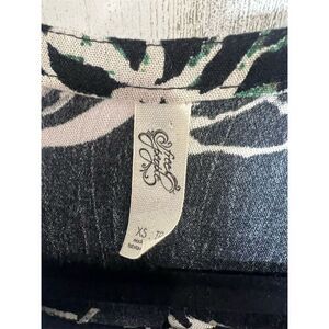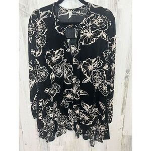 Keywords: Free People dress, XS tunic, black mini dress, floral pattern, women's casual wear, spring fashion, long sleeve dress, keyhole neckline, foil print design, rayon material, swing style, pre-owned dress, size XS, short dress, women's clothing