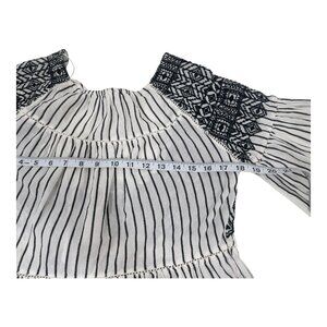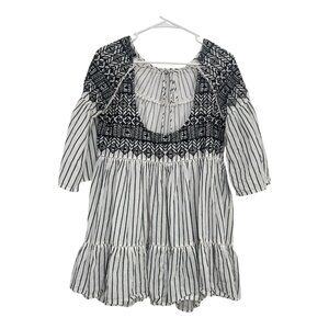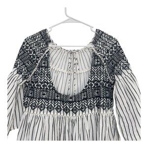 Free People XS Black/White Embroidered Boho Stripe Mini Dress Tassel Tie Back