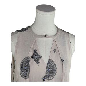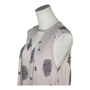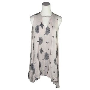 Float through your day in effortless boho style with this dreamy Free People sleeveless tunic dress, size XS. Crafted from soft, lightweight 100% rayon, this airy piece drapes beautifully and offers ultimate comfort and movement. The light blush-nude base is adorned with an intricate black and subtle blue mandala-inspired print, giving it that signature Free People free-spirited, artsy vibe.