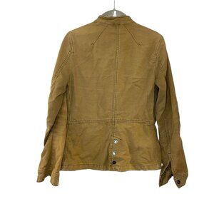 The Free People XS Cargo Rumpled Military Army Green Jacket Coat is a stylish and casual outerwear piece inspired by the Y2K style. Made from durable cotton canvas in a military-inspired design, this jacket features a plaid pattern, multiple pockets, and a regular fit for a comfortable and trendy look. Perfect for fall and spring seasons, this jacket is machine washable and easy to care for, making it a practical and fashionable choice for any woman's wardrobe. Made by the popular brand Free People, this military jacket in a twilight green color adds a touch of edgy style to any outfit.