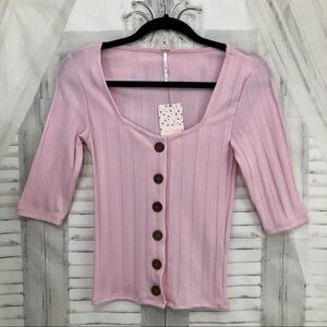 Free People Size XS Central Park Ribbed Cardigan Top Blouse Pink Blush Button