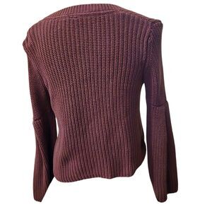 Free People XS Chunky Damsel Bell Sleeve Knit Sweater Cropped Wine Purple