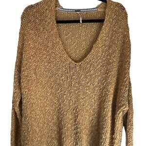 Free People Women's Sz X Small Light Brown Loose Open Knit Chunky Textured Sweater Oversized Relaxed, Pullover, Open knit, V neck. **Good used condition just Light wash wear and light pull see photo number 8****, Breathable Material Cotton Blend , Dolman sleeve