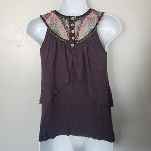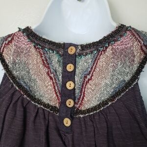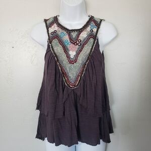 Free People XS Dark Purple Striped Embellished Sleeveless Blouse Button Beading