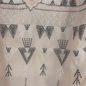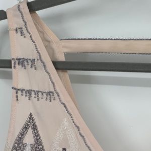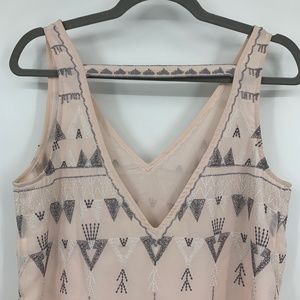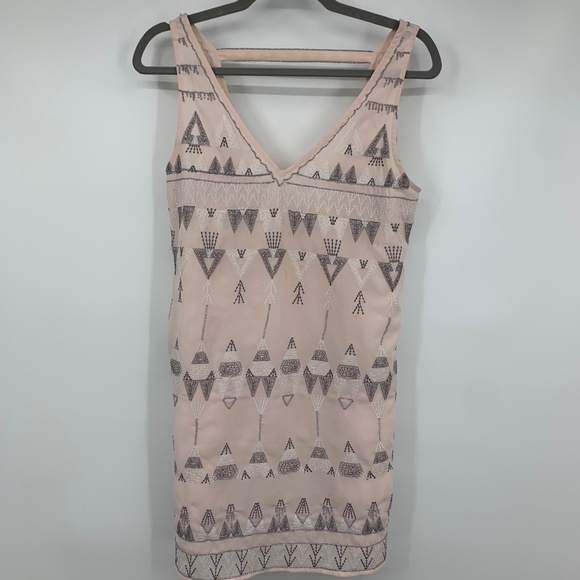 Free People XS Dress Shift Frances Bean Pink Rose Embroidered Deep V back aztec