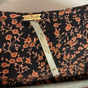 Free People XS Extra Small Clara Black Floral Ditsy Print Mini Tunic Dress Boho