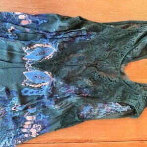 Free People XS Green/Blue/Pink Floral Dress with lace collar detail, great condition