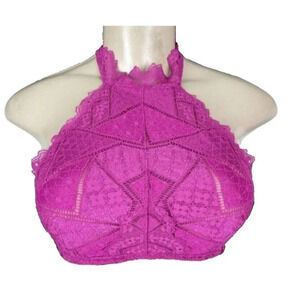 Free People XS Fucshia Pink Sheer Panels Highneck Open Back Halter Bralette