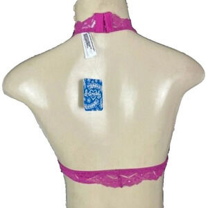Free People XS Fucshia Pink Sheer Panels Highneck Moonstruck Open Back Halter Bralette