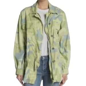 Free People XS Lead The Way Green Camo Utility Barn Coat Oversized Pockets