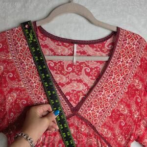 Free People XS Luna Scarf Lacey Print Exaggerated BellSleeve Boho Red Mini Dress