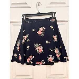 Free People XS Mini Skirt Floral Print Deep Blue Excellent Condition