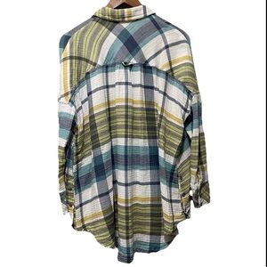 Free People XS Plaid Button-Up Shirt Oversized, Lightweight 100% Cotton