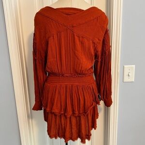 Free People XS Romy Mini Dress ~ Boho Fall Tiered Smocked Orange
