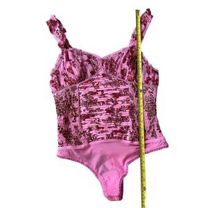 Free People XS Ruched Front Pink Micro Floral Bodysuit Coquette Fairy Girl New