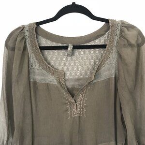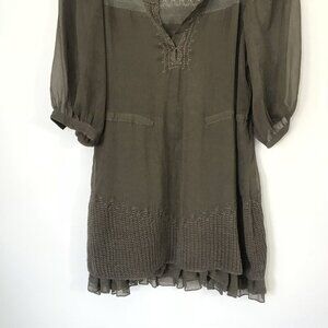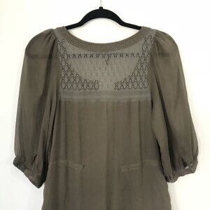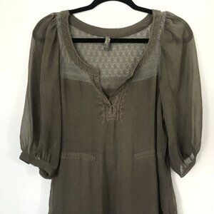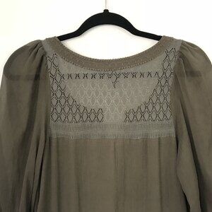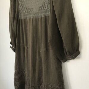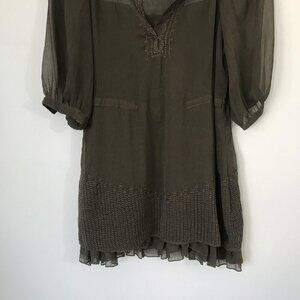 Free People XS Sheer Brown Peasant Boho Mini Shift Dress Embroidered Crochet
