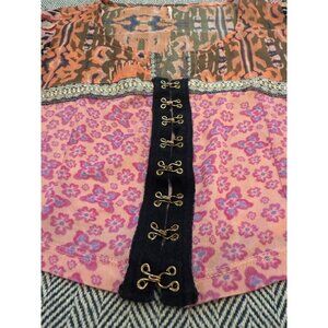 Free People XS Sheer Patchwork Long Bell Sleeve Boho Cropped Top Multicolor Hook