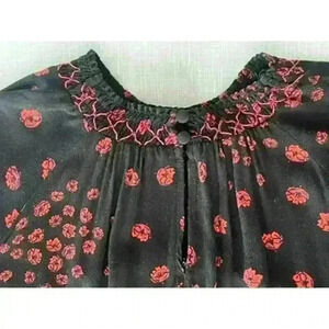 Free People Flowers in Her Hair Smocked Tunic Dress in Black Floral Print in Women's Size XS.