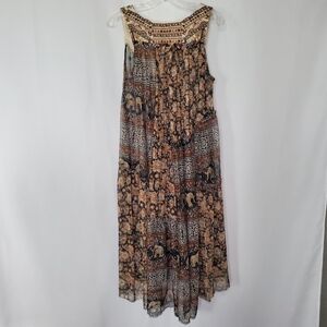 Boho Free People “The Wanderers” midi top/dress in a semi-sheer, printed fabric with lace-up front and pleated detailing. Perfect for spring and summer outings, festivals, or beach days — flowy and feminine with tiered hem.