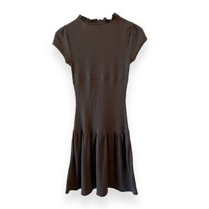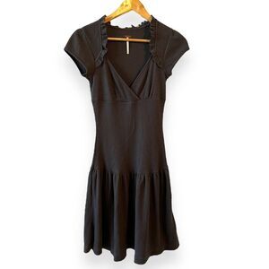 Free People XS Waffle Knit Henley Dress Casual Skater Boho Artsy Lagenlook Chic Charcoal