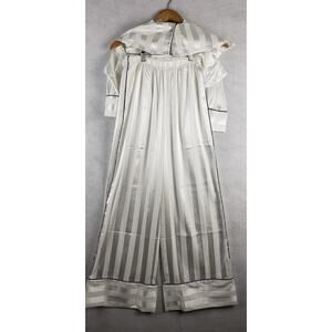 Free People XS Wide Leg Satin Pajama Set Ivory White Stripe Minimalist Basic NWT