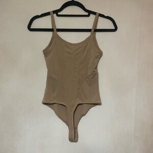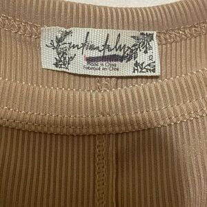Free People XS tan ribbed exposed seam snap crotch bodysuit NWOT